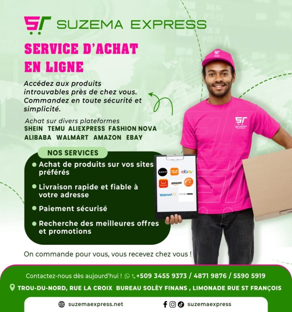 Nous facilitons vos achats sur les plateformes de commerce en ligne internationales. Vous nous communiquez les produits souhaités, et nous nous chargeons de l’achat, du paiement, de la réception des colis, du transport et de la livraison finale. Ce service vous permet d’acheter sans contrainte, sans stress et en toute confiance, même si vous ne disposez pas de moyens de paiement internationaux.
